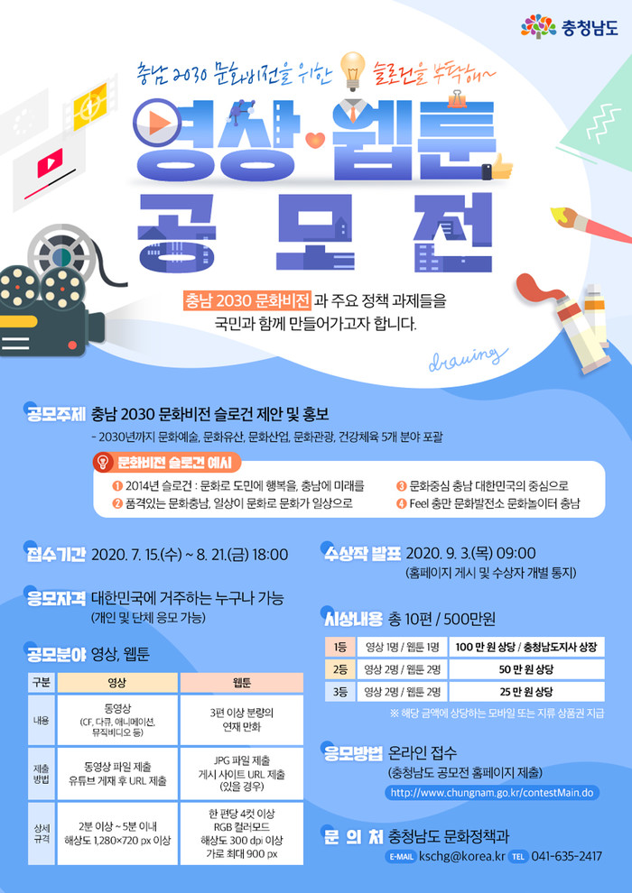 충남도, 2030 문화비전 슬로건 영상·웹툰 공모