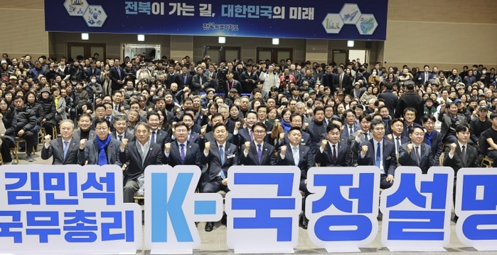 김민석 국무총리가 19일 전북대학교 JBNU컨벤션센터에서 열린 ‘K-국정설명회’에 참석해 전북을 ‘미래산업의 테스트베드’로 육성하겠다는 정부의 의지를 재확인했다. 국민주권정부 출범 6개월을 맞아 전국을 순회하며 진행되는 이번 행사에는 도민 500여 명이 참석해 정부와 직접 소통하는 시간을 가졌다.