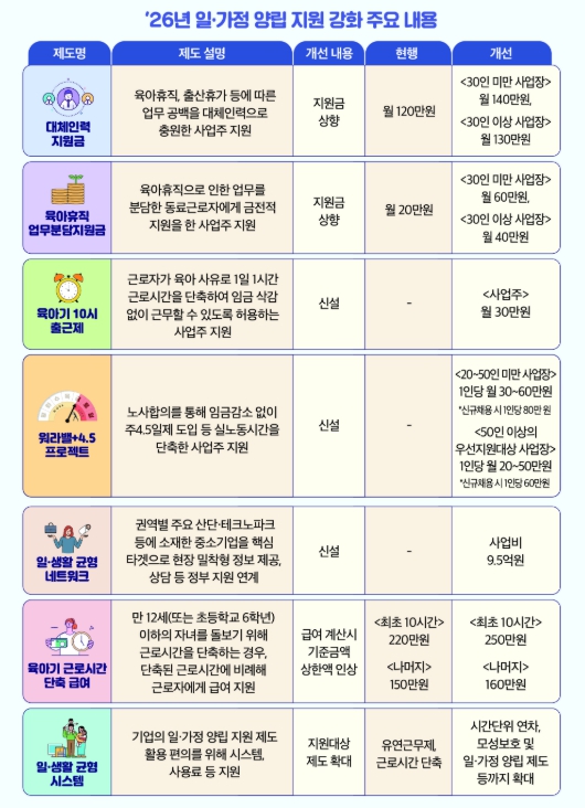 | ▲ ’26년 일‧가정 양립 지원 강화 주요 내용 |