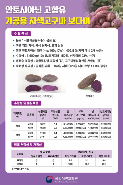 | ▲ 가공용 자색고구마 ‘보다미’ 품종 특성 |