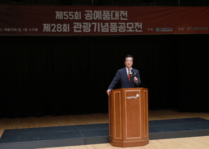 대전시의회 조원휘 의장은 26일 대전예술가의집(중구 문화동)에서 개최된 2025 대전광역시 제55회 공예품대전 및 제28회 관광기념품 공모전에 참석해 대전의 문화예술 진흥과 관광산업 발전을 위한 지원을 약속했다.