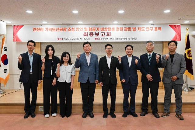 이번 최종보고회에는 연구모임 소속 의원들이 참석했으며, 부산광역시 공항기획팀, 연구용역을 수행 중인 신라대학교 연구진과 부산시의회 정책지원관 등도 함께 했다.