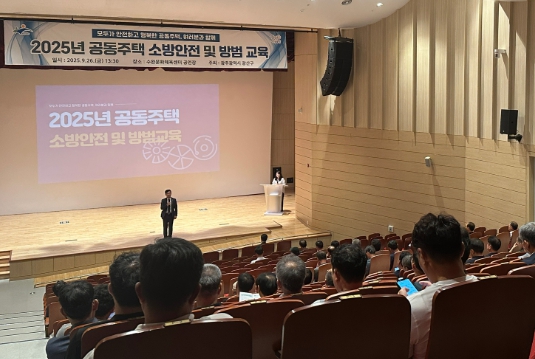 광주 광산구는 26일 수완문화체육센터에서 지역 의무 관리 대상 공동주택 193단지의 시설물 안전관리책임자, 경비책임자 160여 명을 대상으로 소방안전 및 방범 교육을 했다고 밝혔다.