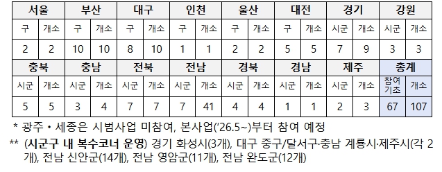| ▲ 광역별 그냥드림 시범사업장 운영 현황 |