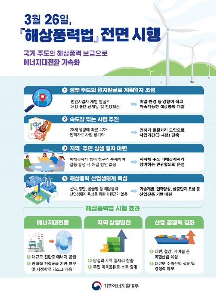 기후에너지환경부, 3월 26일, 「해상풍력법」 전면 시행