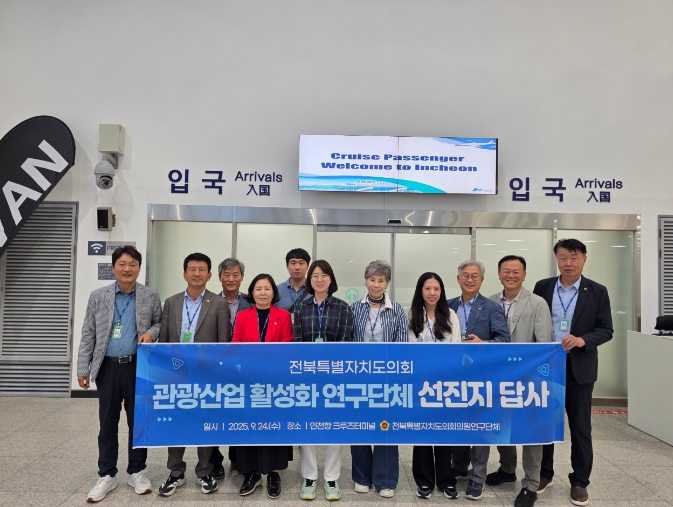 전북특별자치도의회 관광산업 활성화 연구단체(대표의원 김이재 의원)가 24일 크루즈 산업 활성화 우수 선진지 답사를 위해 인천항 크루즈터미널을 방문했다.