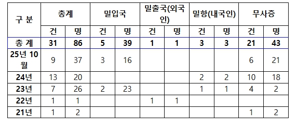 | ▲ 지난 5년간 해상 국경범죄 검거 현황 |