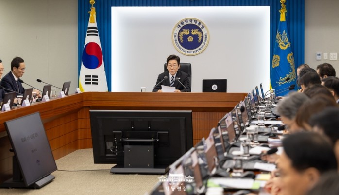 이재명 대통령은 23일 방위산업 성장을 주제로 대통령실 수석, 보좌관 회의를 주재했다.