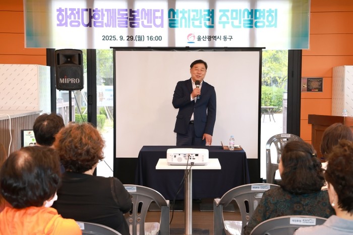 울산 동구는 9월 29일 오후 4시 힐스테이트 이스턴베이 1층 카페테리아에서 김종훈 동구청장과 주민 50여명이 참석한 가운데 ‘화정다함께돌봄센터’ 설치와 관련해 주민설명회를 개최했다.