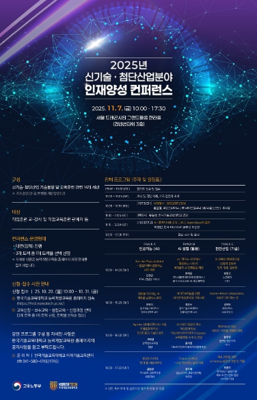 이번 콘퍼런스는 생성형 인공지능(AI)으로 대표되는 산업·기술 환경 변화에 대응해 신기술 분야의 교육훈련 혁신과 인재양성 방향을 모색하기 위해 마련된 행사로, 고용노동부가 주관하고 한국기술교육대학이 주최했다.
