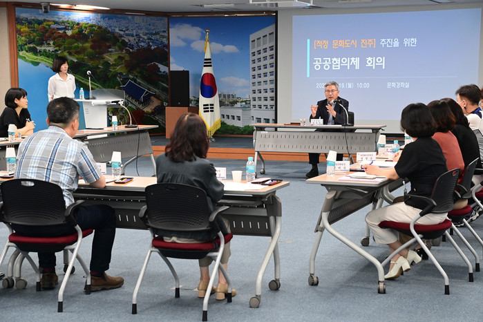 [프레스뉴스] 정재훈 기자= 진주시가 문화의 중심에 시민을 세우고 제5차 법정 문화도시 지정을 위해 박차를 가하고 있는 가운데 19일 시청 문화강좌실에서 진주시문화도시지원센터(이하‘센터’)와 공공협의체 실무부서 회의를 개최했다.