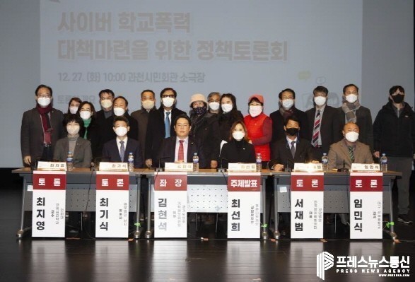[프레스뉴스] 김대일 기자= 경기도의회 기획재정위원회 김현석 의원(국민의힘, 과천)이 좌장을 맡은「사이버 학교폭력 대책마련을 위한 정책토론회」이 27일(화) 과천시민회관 소극장에서 개최됐다. 경기도와 경기도의회가 공동으로 주최하는 ‘2022경기도정책토론대축제’ 일환으로 열린, 이번 토론회는 사이버 학교폭력의 현황을 파악하고, 그에 따른 효과적인 대책 방안을 논의할 필요성이 대두됨에 따라 마련됐다.