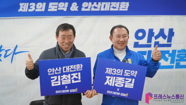 [프레스뉴스] 류현주 기자= 더불어민주당 안산시장 선거를 앞두고 제종길 전 안산시장과 김철진 안산시장 예비후보가 11일 오후 2시 30분 전격 회동을 갖고, ‘원팀’으로 안산 정권을 반드시 탈환하겠다는 강력한 지지 선언을 발표했다.