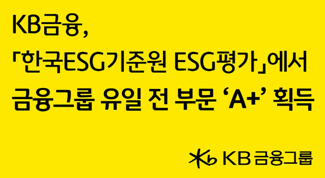 KB금융, 「한국ESG기준원 ESG평가」에서 금융그룹 유일 환경(E)·사회(S)·지배구조(G) 전 부문 ‘A+’ 획득