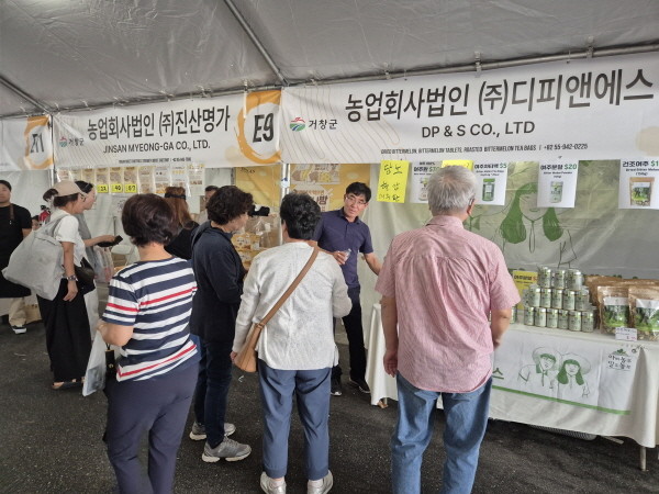 거창군은 지난해에 이어 올해 두 번째로 참가했으며, 농업회사법인 ㈜디피앤에스, 농업회사법인 ㈜진산명가, 시내들에서 각 여주가공품(환, 분말, 차), 밤가공품, 천연발효식초 등 11개 제품을 전량 완판하며 높은 인기를 끌었다.