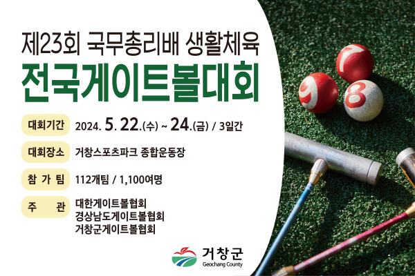 대한 게이트볼협회, 경상남도 및 거창군 게이트볼협회가 주관하는 이번 대회는 게이트볼 협회에 등록된 17개 시·도 112개 팀, 1,100여 명의 선수와 대회 관계자 등이 참가해 열띤 경기와 응원을 통해 전국 게이트볼인들의 화합과 친목의 장을 펼칠 예정이다.
