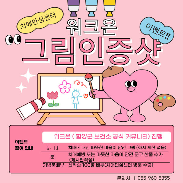 참여 방법은 모바일 걷기 앱 ‘워크온’에서 ‘치매에 대한 마음이 담긴 그림 그리기’ 인증사진을 남기고, 치매에 대한 따뜻한 문구 한 줄을 추가하면 된다.