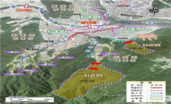 추성지구는 의탄천 0.3km 정비, 급경사지 정비 1.4km, 교량 재가설 2개소 등을 정비하고, 옥매지구는 안평소하천과 옥동소하천 1.55km 정비, 웅평마을과 안평마을의 사면 정비 5개소, 웅평~중촌마을 간 교량 신설 등을 정비할 계획이다.