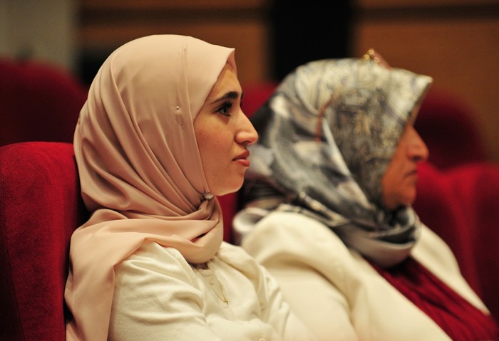 [프레스뉴스] 채정병 특파원=29일(현지시간) 베토벤과 차이콥스키 곡으로 구성된 일라이나이 피아노 트리오의 공연이 요르단 암만 알 후세인 문화센터에서 열린 가운데 연주 전, 관객들이 곡에 대한 소개와 설명을 관심있게 듣고 있다.