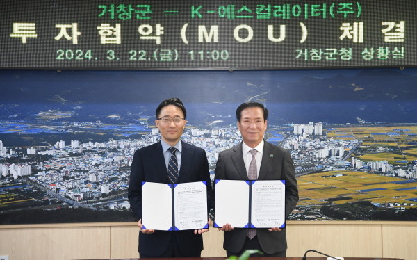 투자 체결은 구인모 군수, 박상훈 K-에스컬레이터(주) 대표, 김태일 현대엘리베이터서비스(주) 대표, 김승호 한국승강기대학교 총장 직무대행, 신양건 (사)승강기밸리기업협의회장 등 관계자가 참석한 가운데 진행됐다.