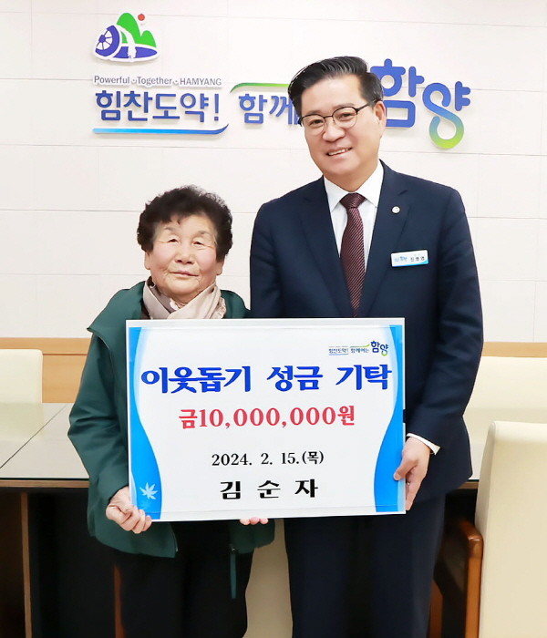 함양군, 78세 김순자 할머니 이웃돕기 성금 1천만원 기탁