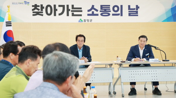 ‘찾아가는 소통의 날’은 7월과 8월 두 달간 진행될 예정으로 진병영 함양군수의 군정 철학 중 하나인 ‘소통하는 공정행정’의 실천과 함께 지방소멸 위기 극복을 위한 군민들의 적극적인 협조를 구하는 의미 있는 시간이 될 것으로 기대된다.