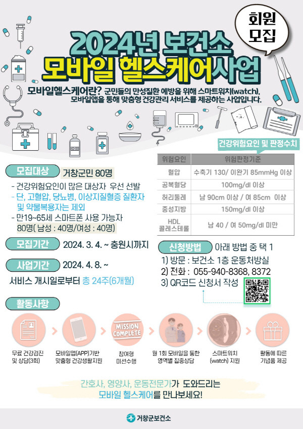 거창군, 보건소 모바일 헬스케어 사업 참여자 80명 모집