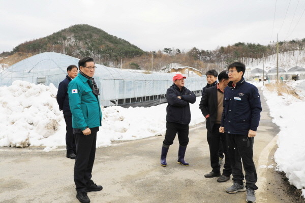 진병영 군수는 주말인 지난 11월 30일 폭설 피해가 집중된 서상면 일대 비닐하우스와 오미자 과원 등 현장을 직접 방문해 상황을 점검하고 농가들을 위로했다.
