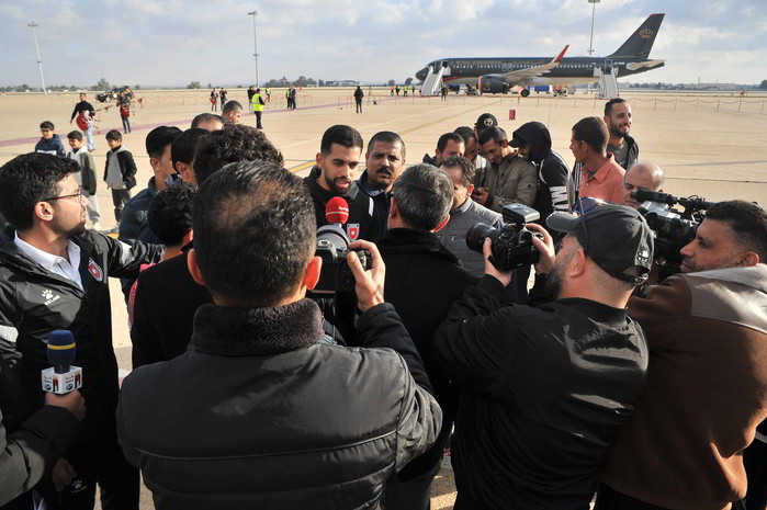 [프레스뉴스] 채정병 특파원=19일(현지시간) 카타르 도하에서 열린 2025 FIFA 아랍컵에서 6골을 넣어 최다득점상 골든부트를 수상한 공격수 알리 올완이 요르단 퀸알리아 국제공항 도착 후 언론들의 집중 관심을 받고 있다. 요르단은 2026 북중미 월드컵 본선진출에 이어 이번 아랍컵에서도 역대 최고의 성적을 거두는 등 놀라운 상승세를 이어가고 있다.