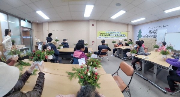 이날은 장애인의 사회참여 증진 및 정교한 일상생활 동작 개선을 위해 재활(크리스마스 센터피스) 원예 프로그램을 진행했다.