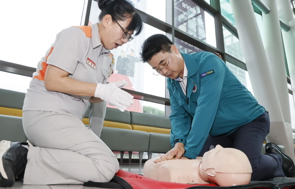 대원들은 시험용 마네킹을 이용해 직접 제작한 음악에 맞춰 경쾌하고 재미있게 심폐소생술을 시연하고, 군민들이 직접 체험해 볼 수 있는 기회를 마련했다.