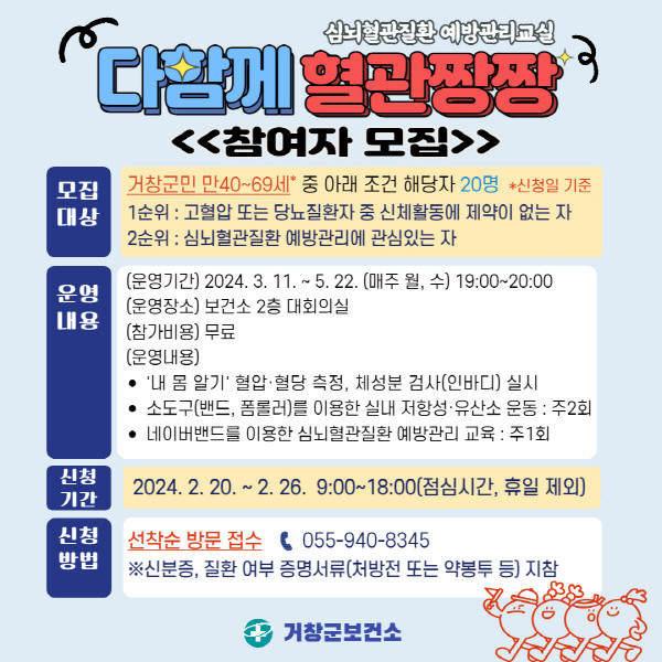 | ▲다함께 혈관짱짱 참여자 모집 안내문(사진=거창군) |
