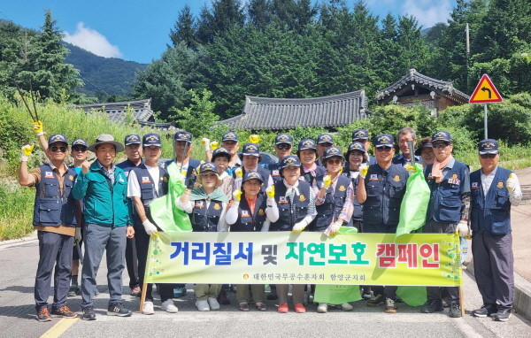 | ▲ 무공수훈자회 함양군지회 병곡면 대봉산 환경정화 활동 (사진=함양군) |