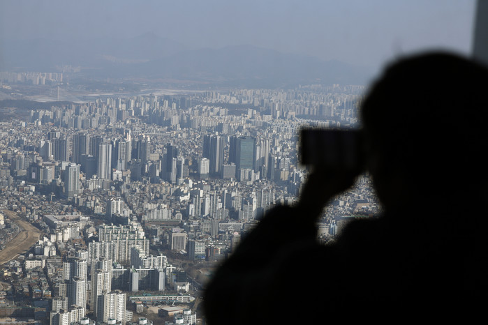 | ▲이재명 대통령이 "부동산 정상화는 5000피(코스피 5000), 계곡 정비보다 훨씬 쉽고 더 중요한 일"이라며 "이번이 마지막 기회였음을 곧 알게 될 것"이라고 밝힌 다음 날인 1일 서울시 송파구 올림픽로 롯데 월드 타워 서울스카이 전망대에서 아파트 등 주택 단지가 보이고 있다./사진-뉴스1 |