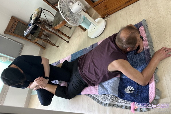 | ▲돌봄 대상자가 ‘누구나 돌봄 사업’의 재활 돌봄 서비스를 받고 있다.(사진=시흥시) |
