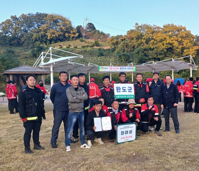 ▲ ‘2024년 전라남도 산불 지상 진화·통합 지휘 경연대회’에서 장려상을 수상하며 지난해 최우수상에 이어 2년 연속 입상하는 성과를 거뒀다.(사진제공=완도군) |