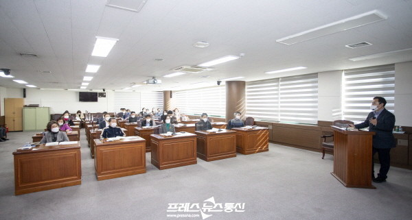 ▲ 안산시의회가 12일 2021년 제2차 정례회 대비 역량강화 교육 및 현장 활동을 실시했다. 사진은 이날 의회 대회의실에서 진행된 역량강화 교육 중 한 장면(사진=안산시의회) |