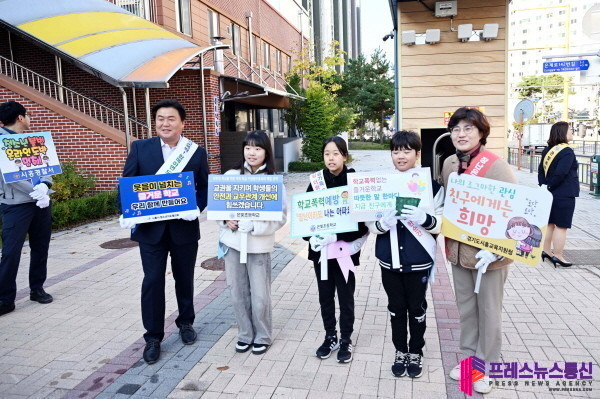 [프레스뉴스] 장현준 기자= 시흥시(시장 임병택)와 시흥교육지원청, 시흥경찰서가 합동으로 지난 5일 은빛초등학교 등굣길에서 ‘학교폭력 예방 캠페인’을 진행했다.