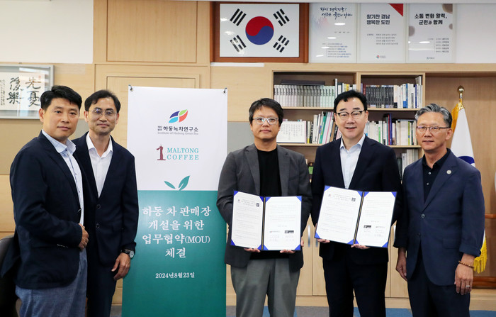 (재)하동녹차연구소(이사장 하승철 하동군수)는 지난 23일 하동군청에서 성장 프랜차이즈 ㈜말통커피와 하동 차(茶)를 활용한 메뉴 개발 및 티 카페 개설을 위한 양해각서(MOU)를 체결했다고 밝혔다.