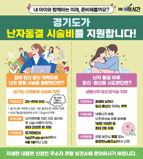 이번 사업은 난자동결 시술을 완료한 후 신청하면 환급하는 방식으로 운영되며, ‘경기 민원24’를 통해 신청할 수 있다.