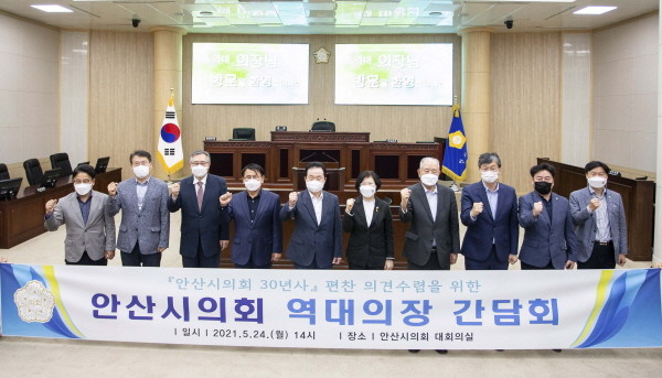 [프레스뉴스] 강보선 기자= 안산시의회(의장 박은경)가 지방의회 개원 30주년을 맞아 의회 30년사 편찬을 추진하고 있는 가운데 지난 24일 ‘「안산시의회 30년사」 편찬 의견 수렴을 위한 역대 의장 간담회’를 개최했다.