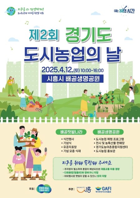 [프레스뉴스] 장현준 기자= 시흥시(시장 임병택)는 4월 11일 법정기념일인 ‘도시농업의 날’을 기념하고 시민공동체 활성화를 위해, 4월 12일 오전 10시부터 배곧텃밭나라에서 ‘2025년 도시농업의 날 기념식 및 시민행복텃밭 개장’ 행사를 개최한다.