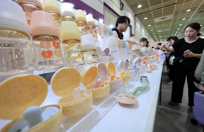 | ▲서울 강남구 코엑스에서 열린 '코베 베이비페어'를 찾은 관람객들이 육아용품을 살펴보고 있다./사진-뉴스1 |