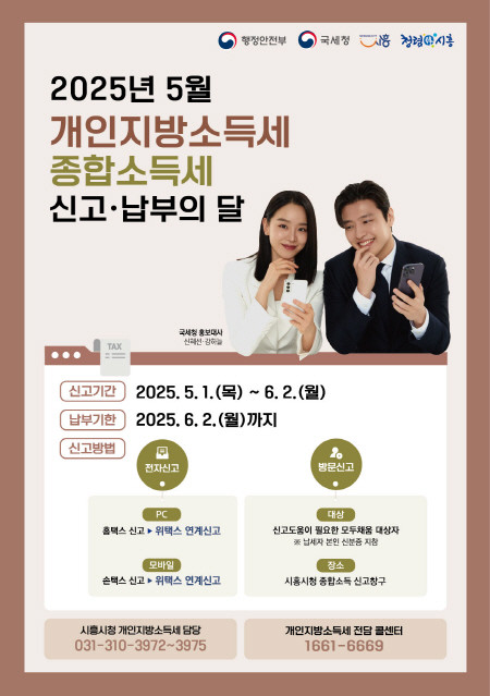 ▲2025년 5월 개인지방소득세, 종합소득세 신고·납부의 달 홍보 포스터(사진=시흥시) |