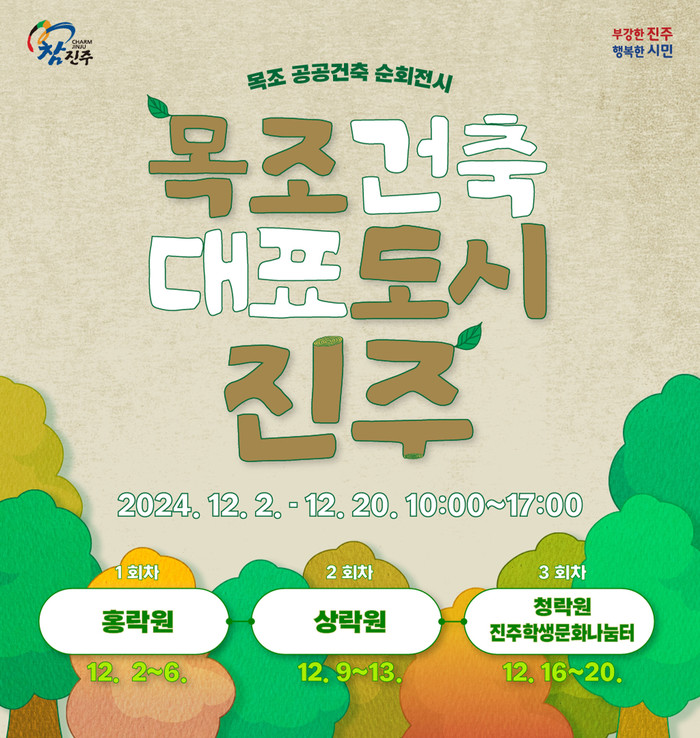 진주시 관계자는 “이번 전시를 통해 목조건축의 가치와 매력을 시민들에게 널리 알리고 친환경적이고 지속 가능한 건축 방식을 적극적으로 소개하고자 한다”며 “진주가 목조건축의 대표도시로 자리 잡을 수 있었던 성과를 보여주는 소중한 기회이니만큼 많은 관심과 관람을 부탁드린다”고 말했다.