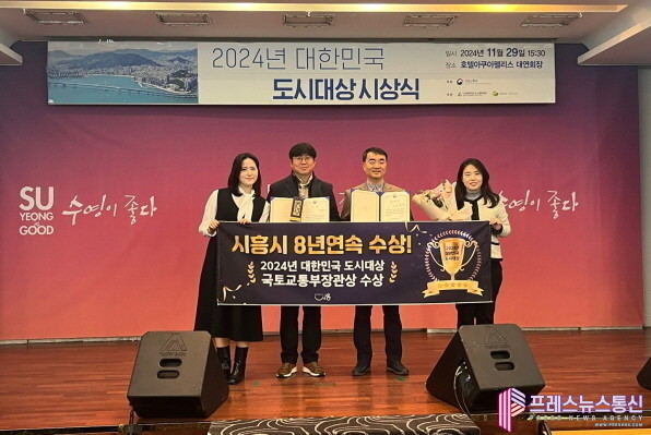 [프레스뉴스] 장현준 기자= 시흥시(시장 임병택)가 지난 11월 29일 부산 호텔아쿠아펠리스에서 열린 ‘2024년 대한민국 도시대상’에서 국토교통부장관상을 받았다. 이로써 시는 지자체 최초로 8년 연속 수상이라는 영예를 안았다.