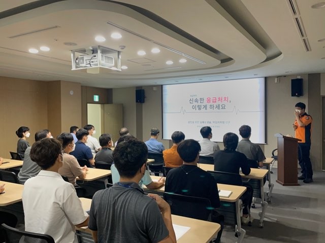 이번 교육은 교육생들이 테러와 화재 등 위기 상황에 신속하게 대응하고 심정지 환자가 발생했을 때 심폐소생술과 자동심장충격기 사용 방법을 직접 체험하여 몸에 익히게 하기 위해 마련됐다.