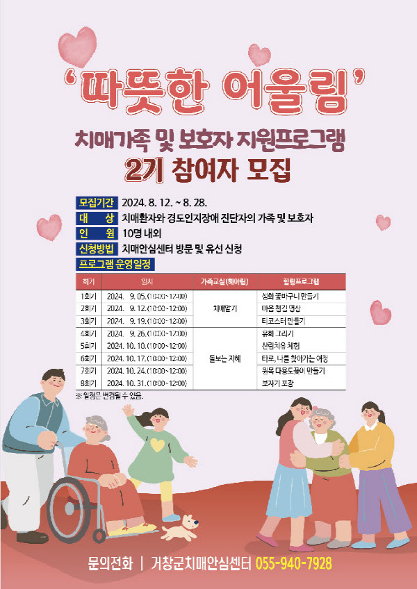 | ▲ 거창군 치매가족 및 보호자 지원프로그램 따뜻한 어울림 2기 안내문(사진=거창군) |