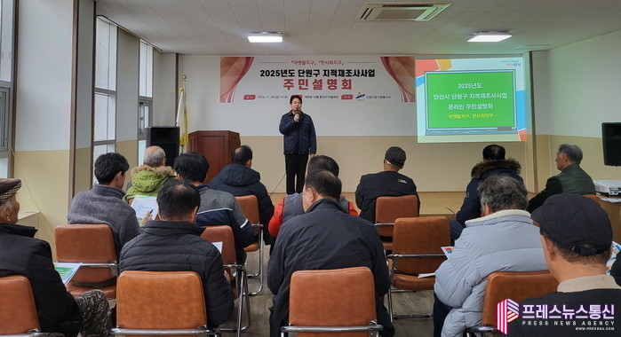 [프레스뉴스] 장현준 기자= 안산시 단원구(구청장 이동표)는 지난달 29일 대부남동 흥성리 마을회관에서 내년도 지적재조사사업 주민설명회를 개최했다고 2일 밝혔다.