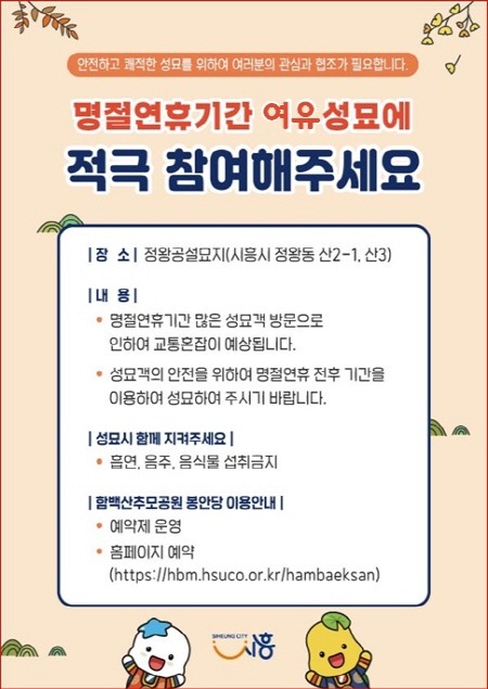 시흥시, 명절 전후 ‘여유 성묘 캠페인’ 추진
